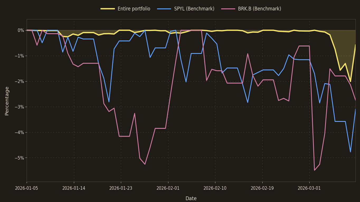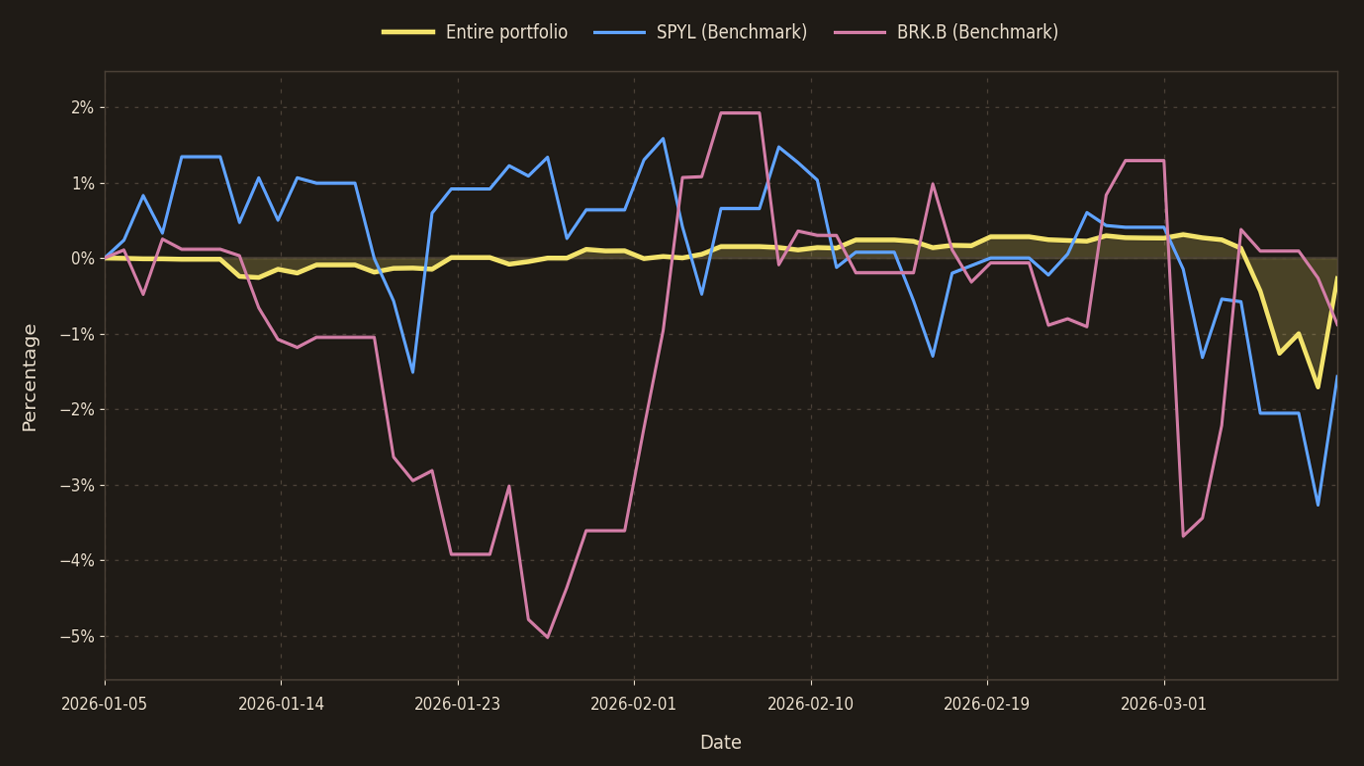 Benchmarks are reference points, not targets. SPYL (S&P 500 UCITS ETF, USD Accumulating) represents broad equity exposure, while BRK.B (Berkshire Hathaway Inc.) is included as a capital-allocation comparator. Differences in sector exposure, currency, and risk profile are intentional.